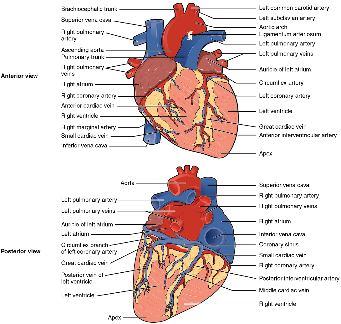 In this unit, you will explore the remarkable pump that propels the blood into the vessels. There is no single better word to describe the function of the heart other than “pump,” since its contraction develops the pressure that ejects blood into the major vessels: the aorta and pulmonary trunk. From these vessels, the blood is distributed to the remainder of the body. Although the connotation of the term “pump” suggests a mechanical device made of steel and plastic, the anatomical structure is a living, sophisticated muscle. As you read this chapter, try to keep these twin concepts in mind: pump and muscle.