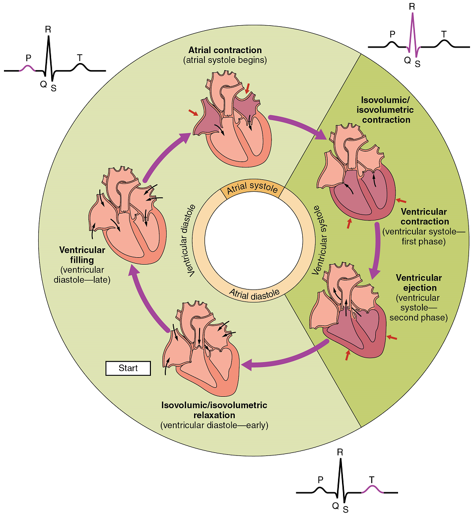 The depolarization events that appear on an ECG tracing should result in contraction of the corresponding chambers (Figure 19). Repolarization events measured then correspond with relaxation of the corresponding chambers.